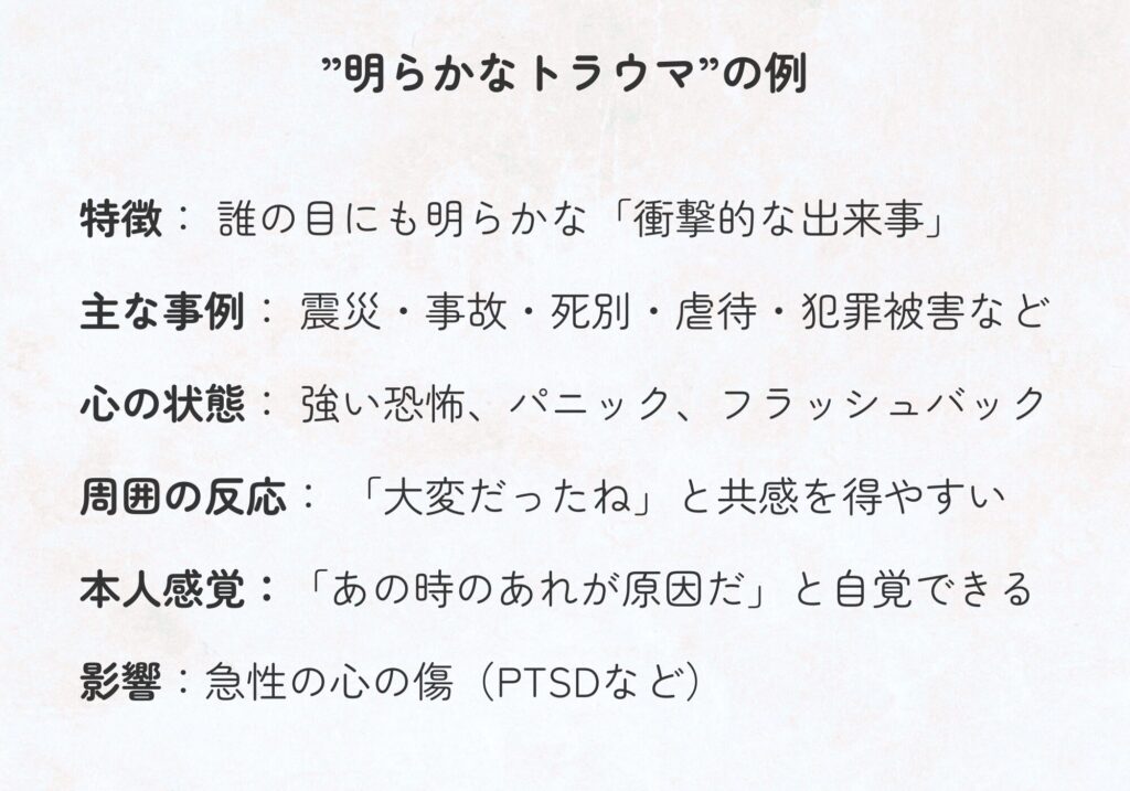 でも、衝撃的な出来事ではないこともトラウマになる可能性があります。